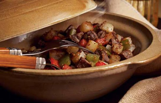 Heat a 12 inch sauté pan over medium heat. Add 1 Tbsp. olive oil. Add potatoes, green peppers and red peppers. Toss and cook through until lightly brown, about 2 minutes. Remove potato mix to a plate. Add remaining olive oil, and when hot, add meat. Cook meat for 1-2 minutes until brown on all sides. Return potato mix and toss all with Mrs. Dash® Tomato Basil Seasoning Blend. Serve on individual plates as full plate or garnish or family style platter.