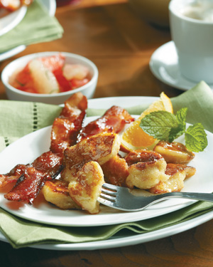 Sprinkle ½ cup sugar over bread in skillet; toss until sugar is melted and syrupy. Transfer eibrot to a platter and serve. Sauté remaining bread in the same manner, using the remaining 3 Tbsp. oil, 3 Tbsp. butter, and ½ cup sugar.