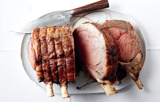 Preheat oven to 400°. Place beef on a rack set inside a roasting pan. Roast until nicely browned, 35–40 minutes. Reduce oven temperature to 275° and continue roasting until an instant-read thermometer inserted into the thickest part of beef registers 115° for medium-rare, 1–1½ hours longer. Transfer roast to a cutting board with ribs pointing upward and let rest at least 30 minutes.