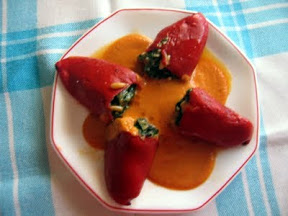 - Sirva en el plato de presentación dos pimientos rellenos y salsee con la salsa, espolvoree con perejil picado finamente.