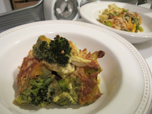 * Place cooked broccoli in lightly greased baking dish. Top with chicken.