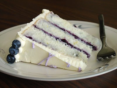 Assembly: To assemble the cake, place a layer, flat side up, on a cake stand. Spread half of the lemon blueberry jam over the top. Place a second layer on top of the first and spread the remaining jam over it. Finally place the third layer on top and frost the top and sides with the lemon buttercream. Decorate with fresh blueberries and serve.