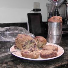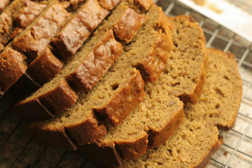 Spray 9 x 5-inch loaf pan with cooking spray and pour batter in. Bake at 350° for slightly over an hour or until a toothpick inserted in the middle comes out clean.
