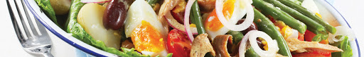 In a large bowl, add the green beans, onion, tomatoes, potatoes, 4 tablespoons of the vinaigrette and the minced shallots; toss to combine. Place lettuce in the bottom of 4 bowls and spoon salad mixture over the lettuce. Place equal amounts of tuna and egg on salad and top with 1 or 2 anchovy fillets. Spoon remaining vinaigrette over each bowl; finishing with olives, capers and parsley.