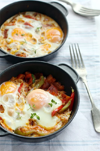 Sprinkle paprika and mix well. Reduce heat to low. Crack eggs slowly over the chili tomato mixture. Cover with a plate and cook for 8 to 10 minutes until eggs are done and slightly runny.