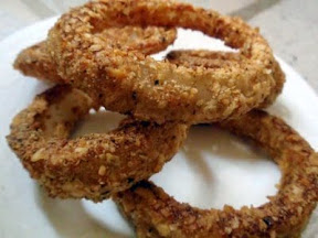Crunchy on the outside, tender and sweet on the inside, these battered and baked onion rings have a fraction of the calories of their deep-fried cousins.