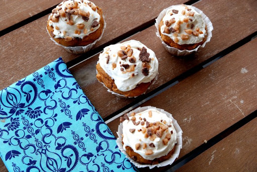 These pumpkin spice toffee cupcakes taste even better the second day…if they last that long!
