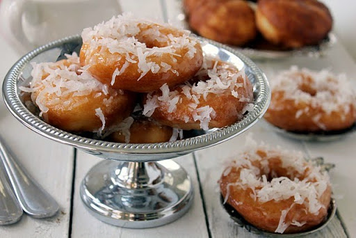 Dip the doughnuts into the Pina Colada glaze and set on rack. Sprinkle glazed donuts with flaked coconut or dip in sprinkles or other toppings to garnish.