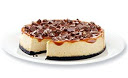 Spread caramel topping over cheesecake just before serving. Garnish with chopped chocolate.