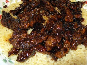 Add the beef to the oil and saute or just two minutes, or until the beef just begins to darken on the edges. You don't need a thorough cooking here since the beef is going to go back on the heat later. Stir the meat around a little so that it cooks evenly. After a couple minutes, use a large slotted spoon to take the meat out and onto paper towels, then pour the oil out of the wok or skillet. Put the pan back over the heat, dump the meat back into it and simmer for one minute.