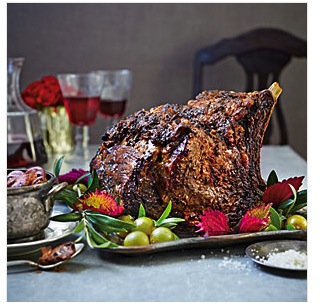 Standing Rib Roast with Red Wine Mushrooms
