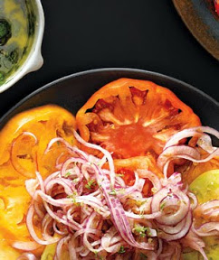 2.Arrange the tomatoes on a platter and season with ½ teaspoon salt. Top with the onion and sprinkle with the lime zest