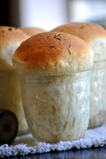 2. Preheat oven to 375 degrees. Place jars on a cookie sheet and spray with non-stick cooking spray. After dough has risen, punch down. Form balls of dough and place one in each jar, making sure dough fills up half of the jar. Let rise again till double in size.