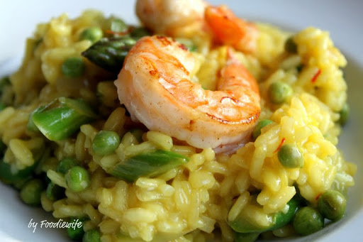 Asparagus, Pea and Saffron Risotto (with Shrimp)