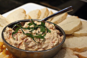 Place the cream cheese, sour cream and mayonnaise in the bowl of an electric mixer fitted with the paddle attachment and beat until smooth. Add the tomatoes and mix well. Stir in the basil. Add salt and pepper; taste for seasonings. Serve at room temperature.