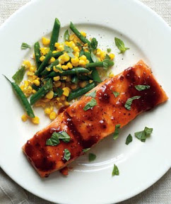 Barbecue-Glazed Salmon with Green Beans & Corn