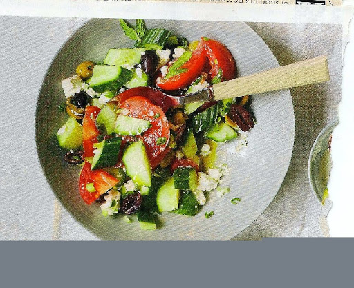 Combine cucumbers, tomatoes, scallions, olives, feta in a large bowl. Whisk oil and lemon juice in a small bowl; season dressing with salt and pepper. pour dressing over salad; toss to coat. Season to taste with salt and pepper.