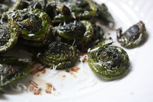 * Toss fiddleheads with lemon zest, salt, pepper and oil.