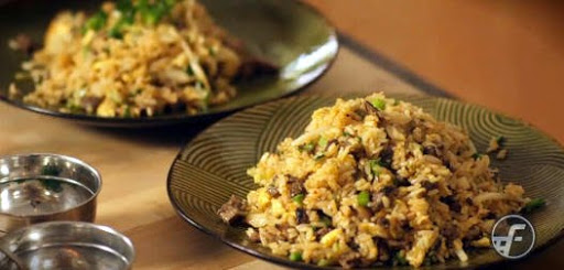 2.Toss in the rice until hot and golden.