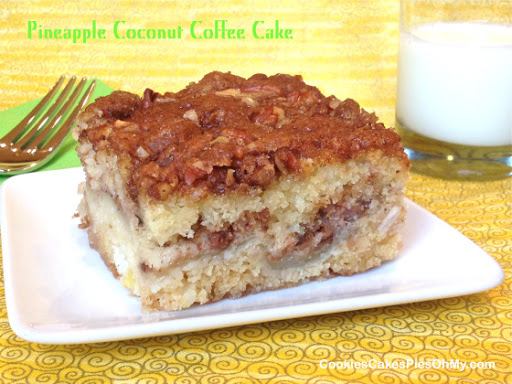 Spray 9″x13″ baking pan with nonstick spray. Spoon half of pineapple coconut batter into baking pan, spread out evenly. Carefully spoon thickened pineapple juice mixture over batter in pan, spread gently. Sprinkle half of cinnamon sugar pecan mixture over thickened pineapple juice. Spoon remaining pineapple coconut batter over cinnamon mixture, carefully spread. Sprinkle remaining cinnamon sugar pecan mixture evenly over batter. Bake for 45-50 minutes.