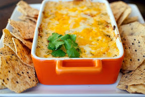 Top with the reserved cheese and bake 20-25 minutes, until hot and bubbly. Garnish with additional cilantro, and serve with tortilla chips.