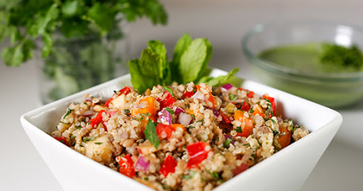 2. Place pine nuts into a pan and lightly toast. Remove from heat. Combine remaining ingredients for the salad along with quinoa, lentils and pine nuts. Toss until combined.