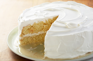 Assemble cake on a cake stand or platter that has a rim as some of the cake's milk mixture will run out of the cake as it stands.