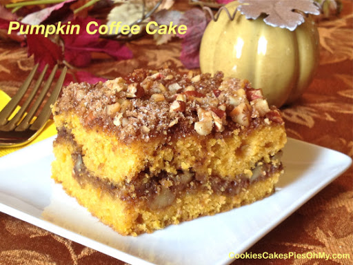 Preheat oven to 350°. Cream butter and sugar. Add eggs, vanilla, pumpkin, and milk; mix well. Add flour, baking soda, and salt; mix just until well combined. In small bowl, stir together topping ingredients; sugar, brown sugar, cinnamon, nutmeg, cloves, ginger, and nuts. Creating layers, spread half the pumpkin batter in a sprayed 9″×9″ baking pan. Sprinkle half of the topping evenly over the batter. Drop spoonfuls of remaining batter over topping and gently spread to make even layer. Sprinkle remaining topping evenly over batter. Bake 30-35 minutes or until pick inserted in center comes out clean.