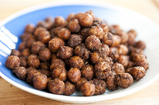 Put the chickpeas onto a baking sheet and into the oven for about 30 minutes. About halfway through, give them a bit of a shake. At the end of the 30 minutes, taste! If they are still soft, back in they go! You want them to have just a little bit of a soft center. When they cool, they will crisp up more.
