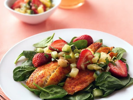 Tilapia Salad with Strawberry-Pineapple Salsa