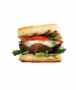 3.Meanwhile, split the bread lengthwise and brush the cut sides with the oil; grill until toasted, 1 to 2 minutes. Rub the cut sides of the bread with the garlic. Cut the bread into quarters and form sandwiches with the watercress, burgers, and red peppers.