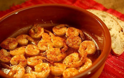 4. Sprinkle with 2 tablespoons hot water and pinches of sea salt and pimenton. Serve at once right from the pot with the bread for soaking up the delicious oily sauce.