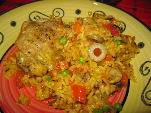 This is a wonderful, filling meal and it makes A LOT. I used boneless skinless chicken breasts, smoked paprika and hot sauce. The flavors work really well together and I think the best part of the dish is the olives, don't leave those out. Excellent complete meal and pretty too!