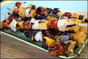 PER SERVING (1/5th of recipe, 2 skewers): 78 calories, <0.5g fat, 125mg sodium, 19g carbs, 3.5g fiber, 5.5g sugars, 2g protein -- PointsPlus® value 0*