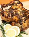 Stuff cavities with lemon rinds and fresh herbs. A poultry mix is fine, usually consisting of rosemary, sage, thyme, parsley and oregano.