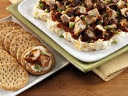 2. Spoon barbecue sauce on top. Sprinkle with chicken and onion. Serve with crackers.