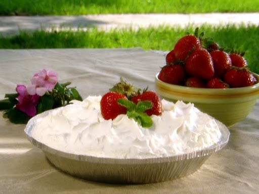 Meanwhile, mix whipped cream with 1/4 cup sugar. Toss strawberries with 1/4 cup sugar. Spread half the whipped cream over pie, then add the strawberries. Top with remaining whipped cream. Chill for at least 8 hours. Garnish with whole berries and mint leaves.