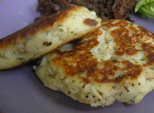Another of my favorite recipes from the Sunset International Cookbook. The original recipe called for peeled and chopped raw potatoes but I've never had good luck using raw potatoes for this recipe. Therefore my adaptation is to use leftover cooked (mashed) potatoes. Can be served as a main meal sidedish or for breakfast.