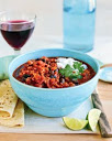 3.Season the chili with salt and pepper and serve with the grilled tortillas.