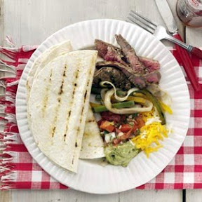 Open foil packets carefully to allow steam to escape. Thinly slice steaks; place beef and vegetables on tortillas. Serve with salsa, cheese, guacamole and sour cream if desired. Yield: 6 servings.
