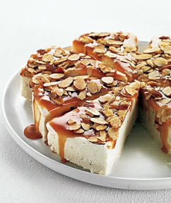 2.Top with 1 cup caramel sauce (slightly warmed, if too thick) and ½ cup toasted sliced almonds. Freeze until firm, at least 1 hour and up to 2 days. To serve, remove from pan and slice.
