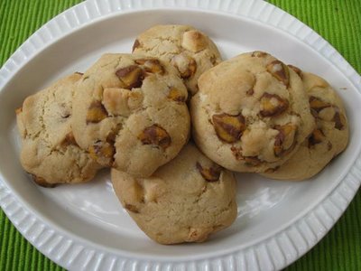 In a lareg bowl,beat together the butter and sugar until pale and creamy.Add the egg yolk,vanilla extract,flour,milk and half the caramel swirl chips and toasted crush cashew nut and stir well with a wooden spoon until throughly combined.