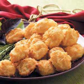 Drop by rounded teaspoonfuls 2 in. apart onto greased baking sheets. Sprinkle with Parmesan cheese. Bake at 425° for 15-20 minutes or until golden brown. Serve warm or cold. Yield: 4 dozen.