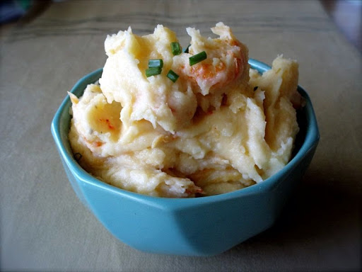 5. Add the crawfish tails to the potatoes, and gently stir it all together. Season to taste, and garnish with snipped chives.
