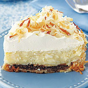 3. Using an electric mixer, beat cream until stiff peaks form. Spread whipped cream over custard, swirling decoratively. Chill pie for 30 minutes. Sprinkle with toasted coconut before serving, if desired.