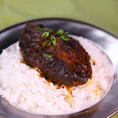 Serve chicken with sauce over rice. Garnish with sliced scallions.