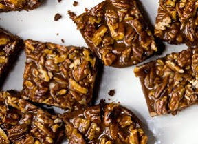 Stir the pecans into the caramel mixture and immediately drizzle over the brownies. Spread evenly to cover the brownies. Cool completely before cutting.