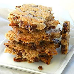 In a mixing bowl, cream the butter and sugar. Gradually add flour. Mix well. Stir in peanut butter chips. Line a 15" x 10" x 1" baking pan with foil. Coat with nonstick cooking spray. Gently press dough into pan. Sprinkle with pecans and press into dough. Bake at 350 degrees for 20 - 25minutes or until golden brown. Cool in pan on wire rack. Invert pan and remove foil. Break brittle into pieces ans store in airtight container.
