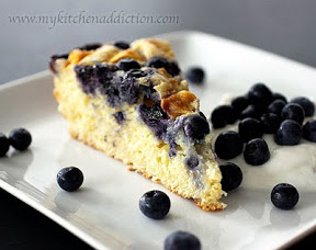 Allow to cool for about 20 – 25 minutes prior to slicing. Serve warm with ice cream or yogurt and fresh blueberries.