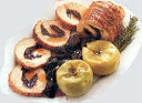 Salpimentar y acomodar las ciruelas y las cerezas en forma alternada, luego arrollarlo y atarlo para que el relleno no se salga y mantenga su forma durante la cocción.